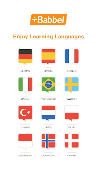 With Babbel you can learn Spanish, Russian, French, German, Italian, Brazilian Portuguese, Swedish, Turkish, Polish, Dutch, Indonesian, Danish and Norwegian.