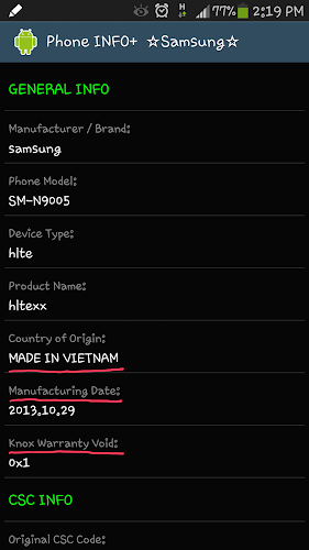 Have you ever wanted to know the Country of Origin behind the label 'MADE BY SAMSUNG'? When the phone was manufactured? How frequently the phone was used? How many times it has been connected to the Charger? Do you want to know the Knox Warranty Void status without entering to the ODIN Download Mode?... Then this app is for you.